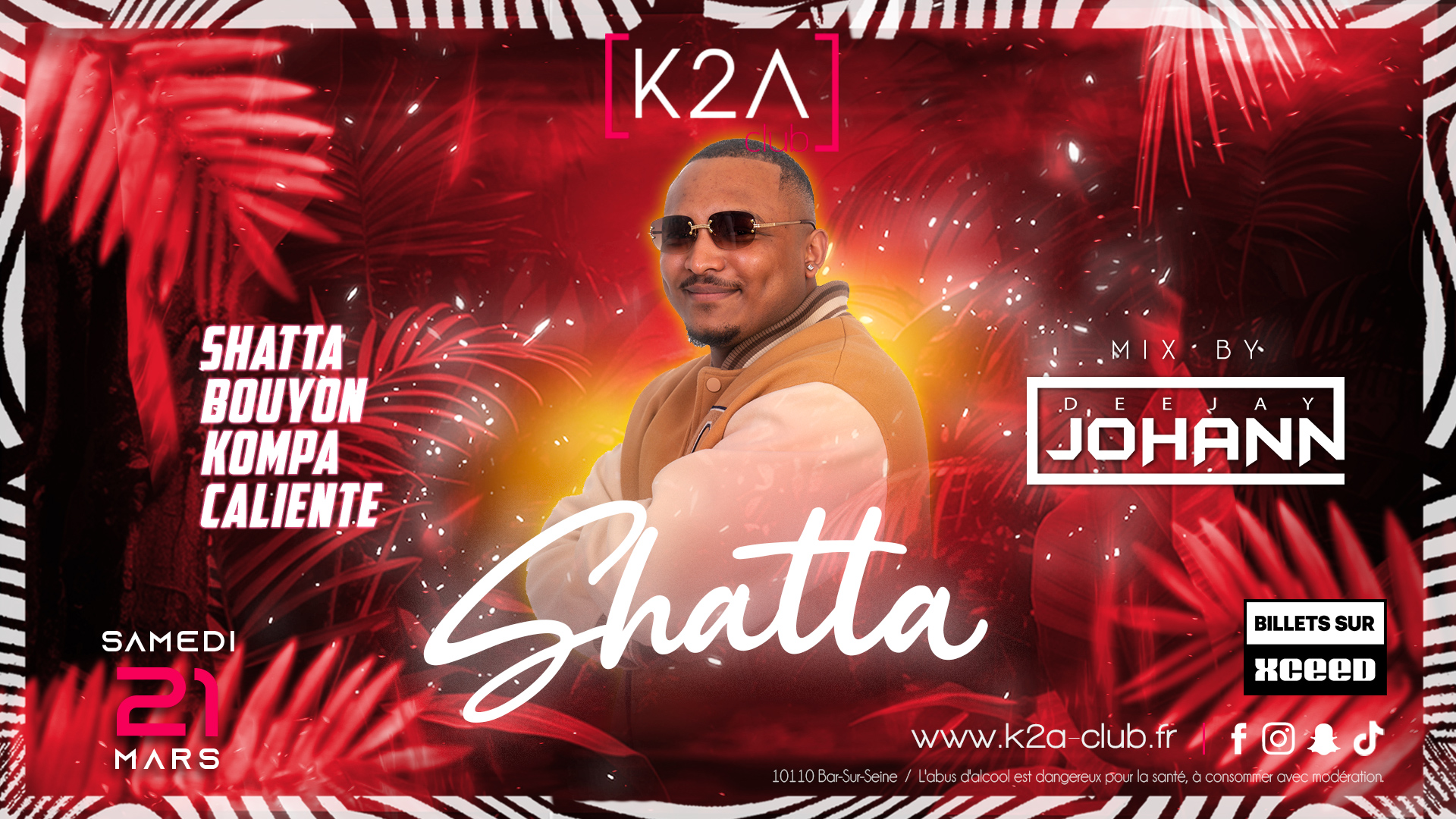 Ce samedi, le K2A passe en mode Shatta Control avec une ambiance caliente du début à la fin. Aux platines, DJ Johann sera présent pour faire vibrer le club sur les meilleurs sons shatta, bouyon et dancehall.