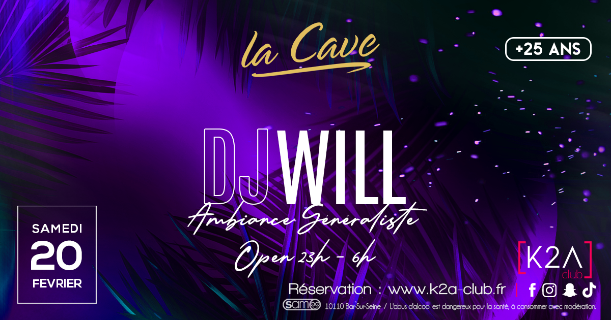 Plongez dans une ambiance conviviale et festive avec DJ WILL, qui prendra le contrôle des platines à La Cave du K2A ! Une sélection musicale généraliste, des sons incontournables et une atmosphère chaleureuse pour danser, partager et profiter d’un moment unique entre amis à partir de 23h !